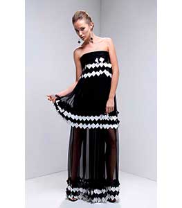 Abito lungo in chiffon con dettagli bicolor
