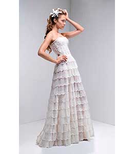 Abito da sposa con corpino interamente ricamato e gonna a balze