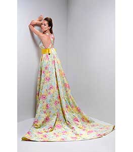 Abito lungo con elegante fantasia e con coda rimovibile